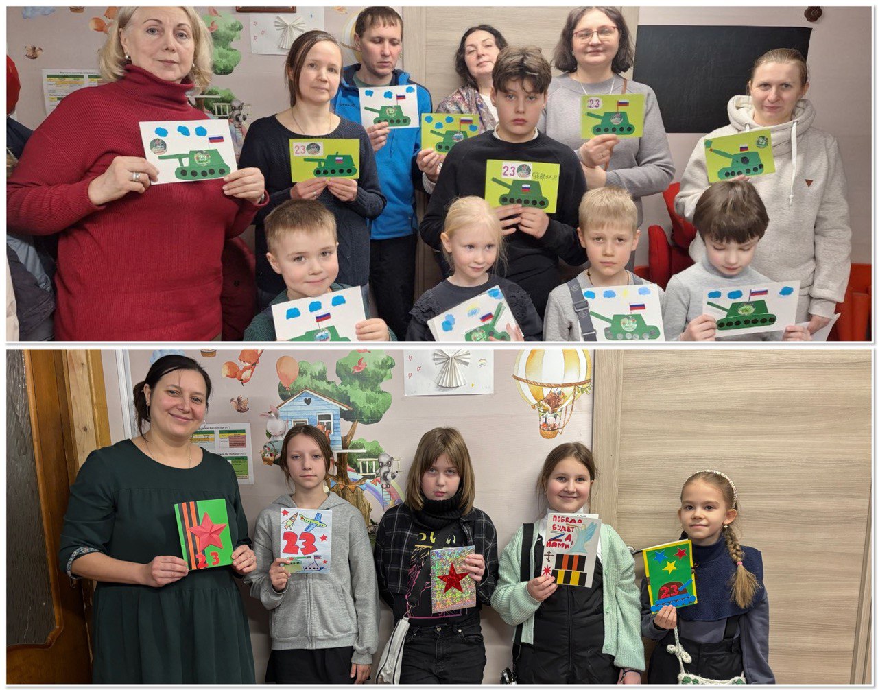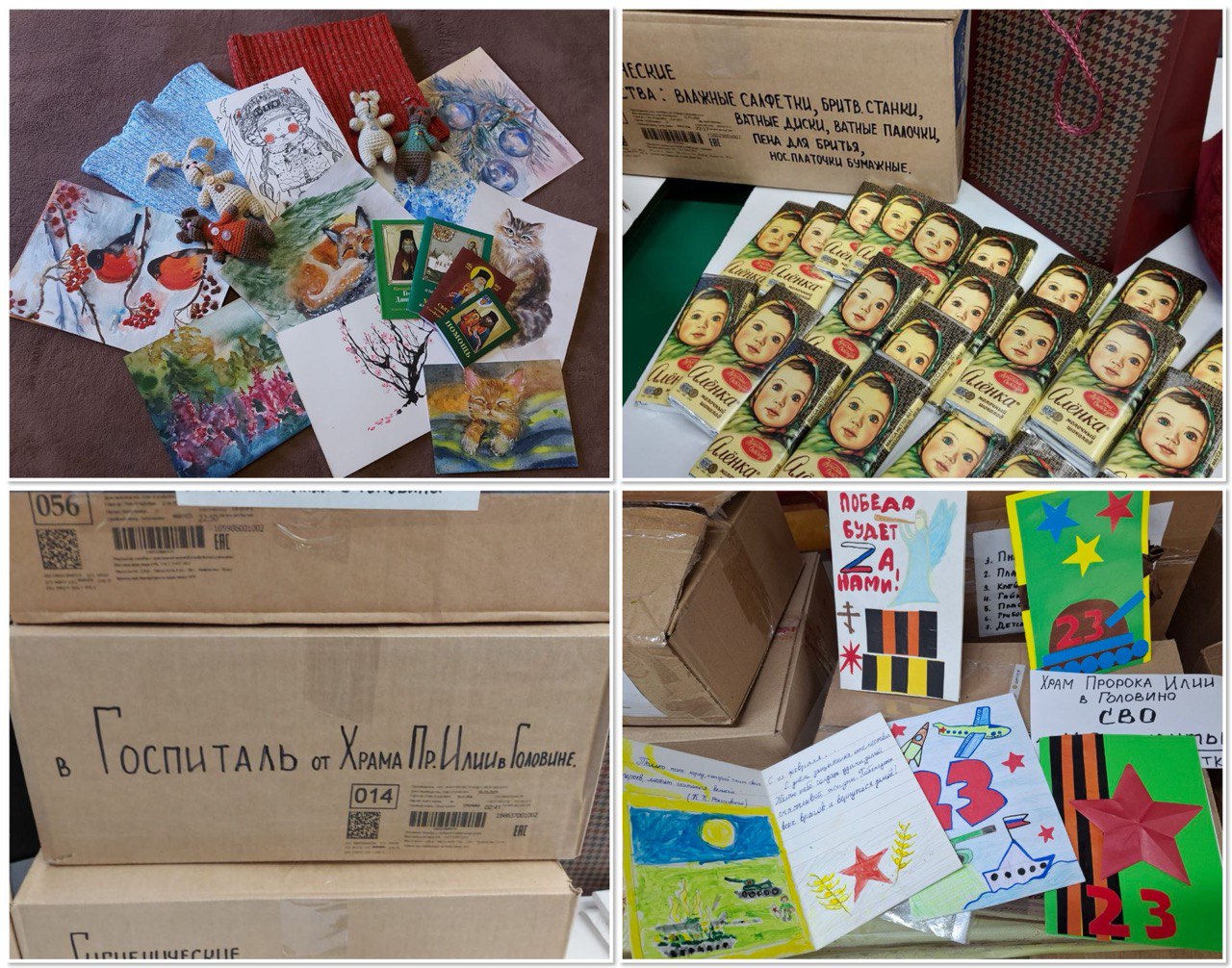 - поздравительные открытки, письма и игрушки ко Дню защитника Отечества, приготовленные учениками Воскресной школы «Ильинка» и их родителями, а также прихожанами нашего храма.